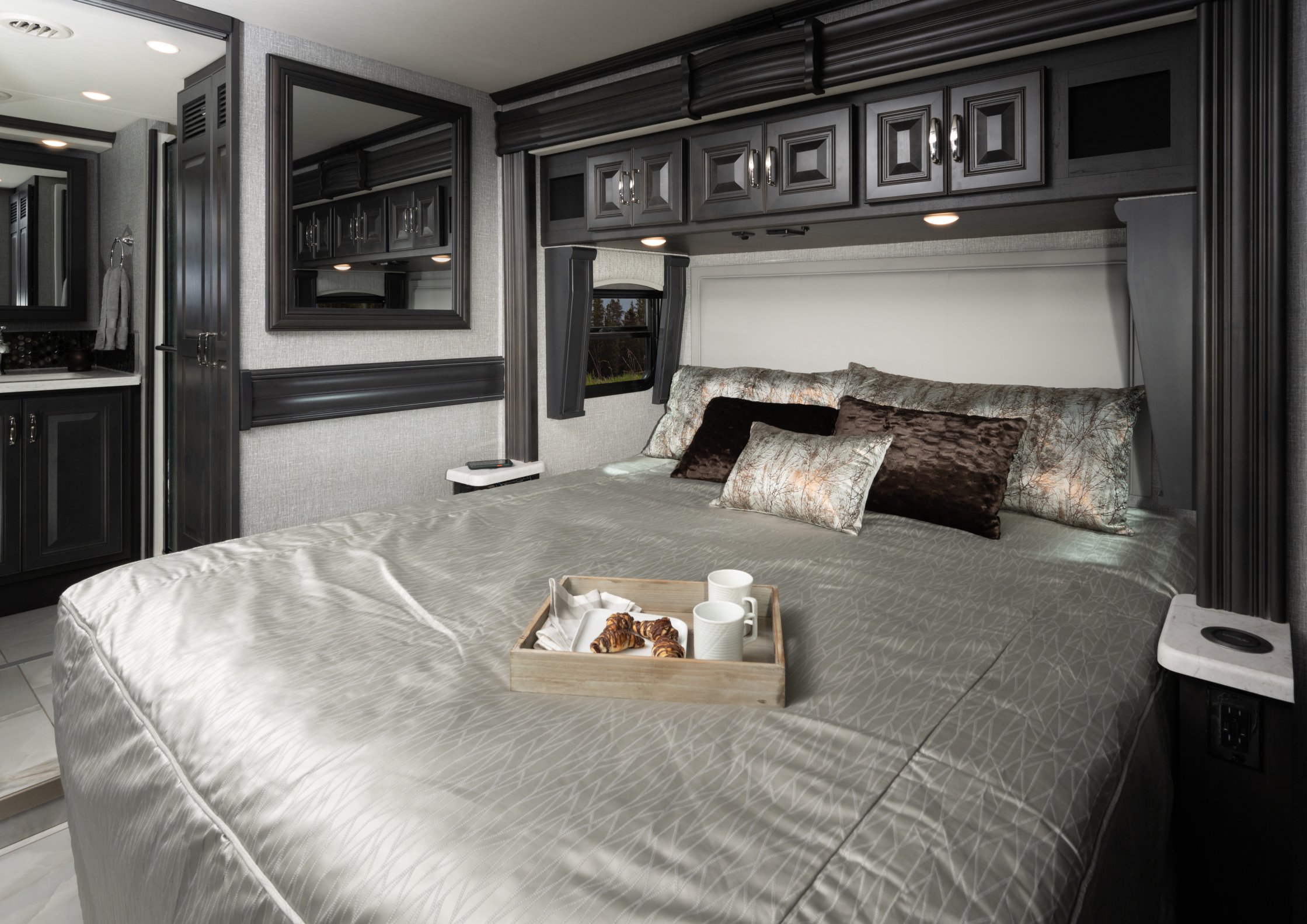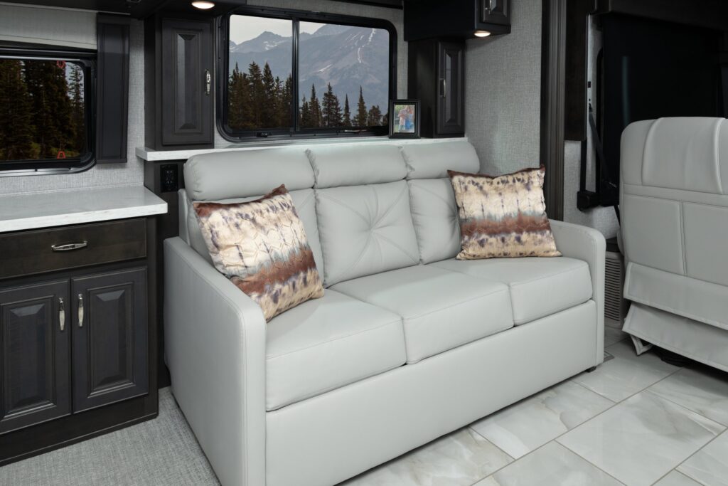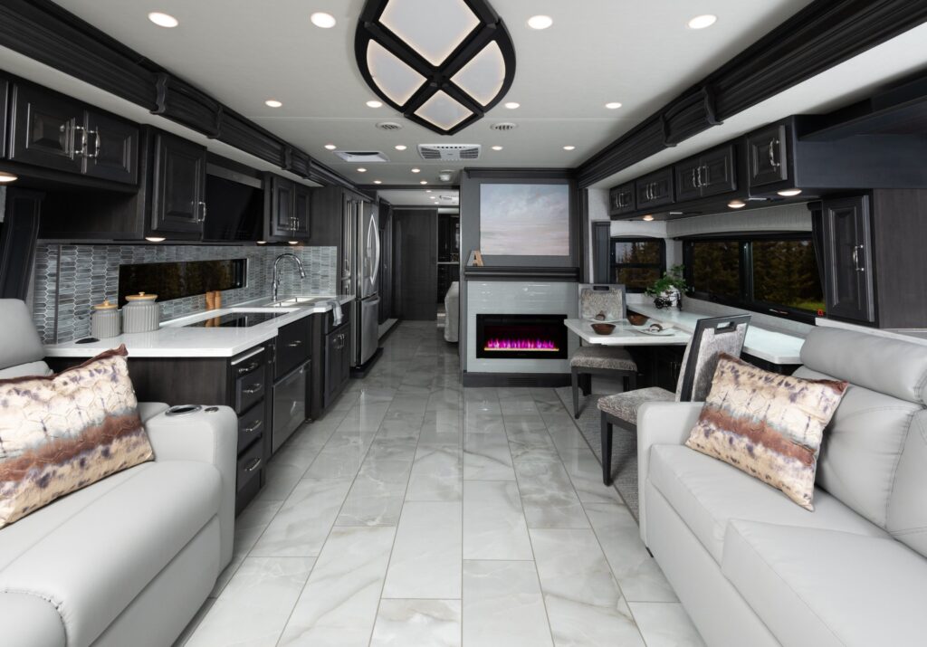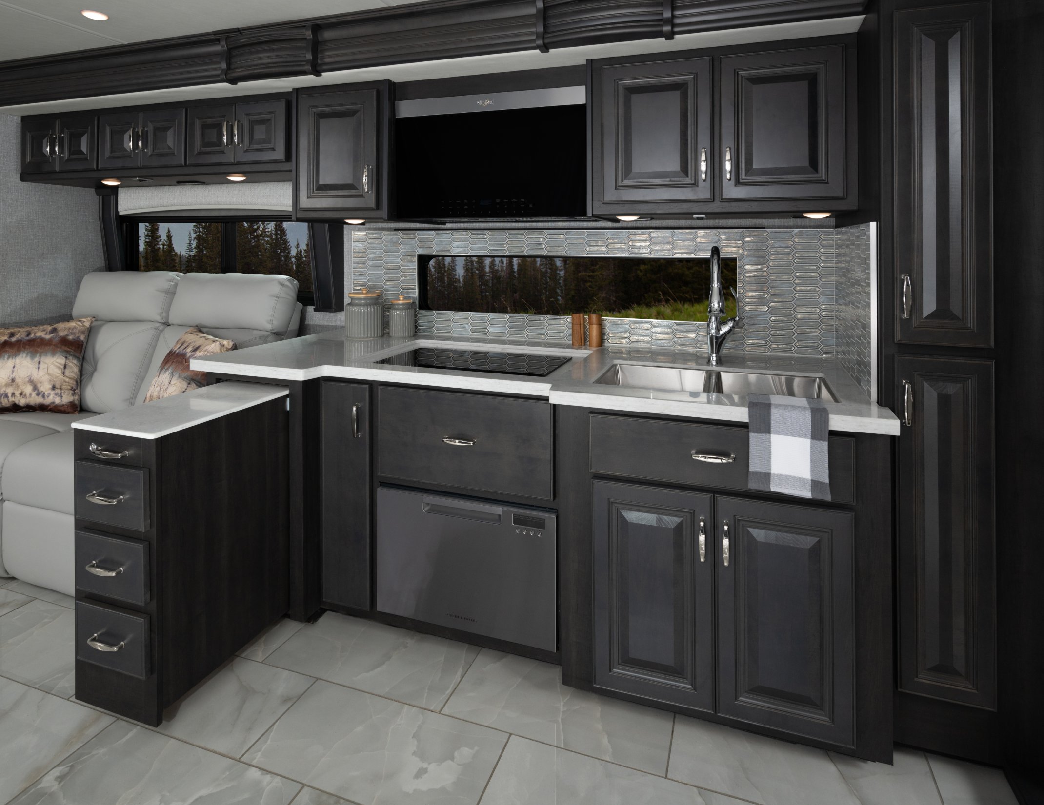Eat well on the road with a galley featuring residential refrigerator, induction cooktop and convection microwave (standard) – just like home!