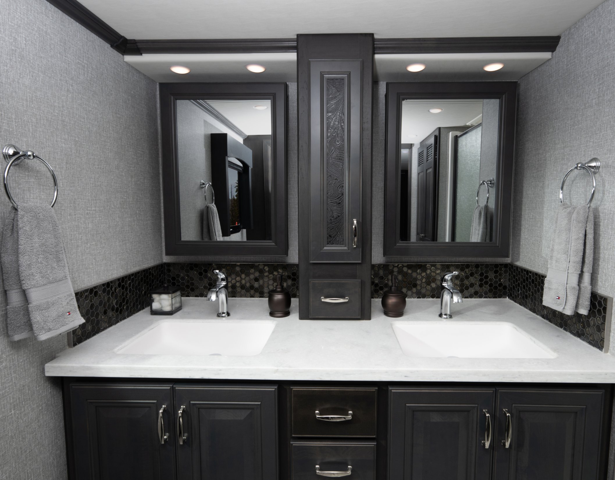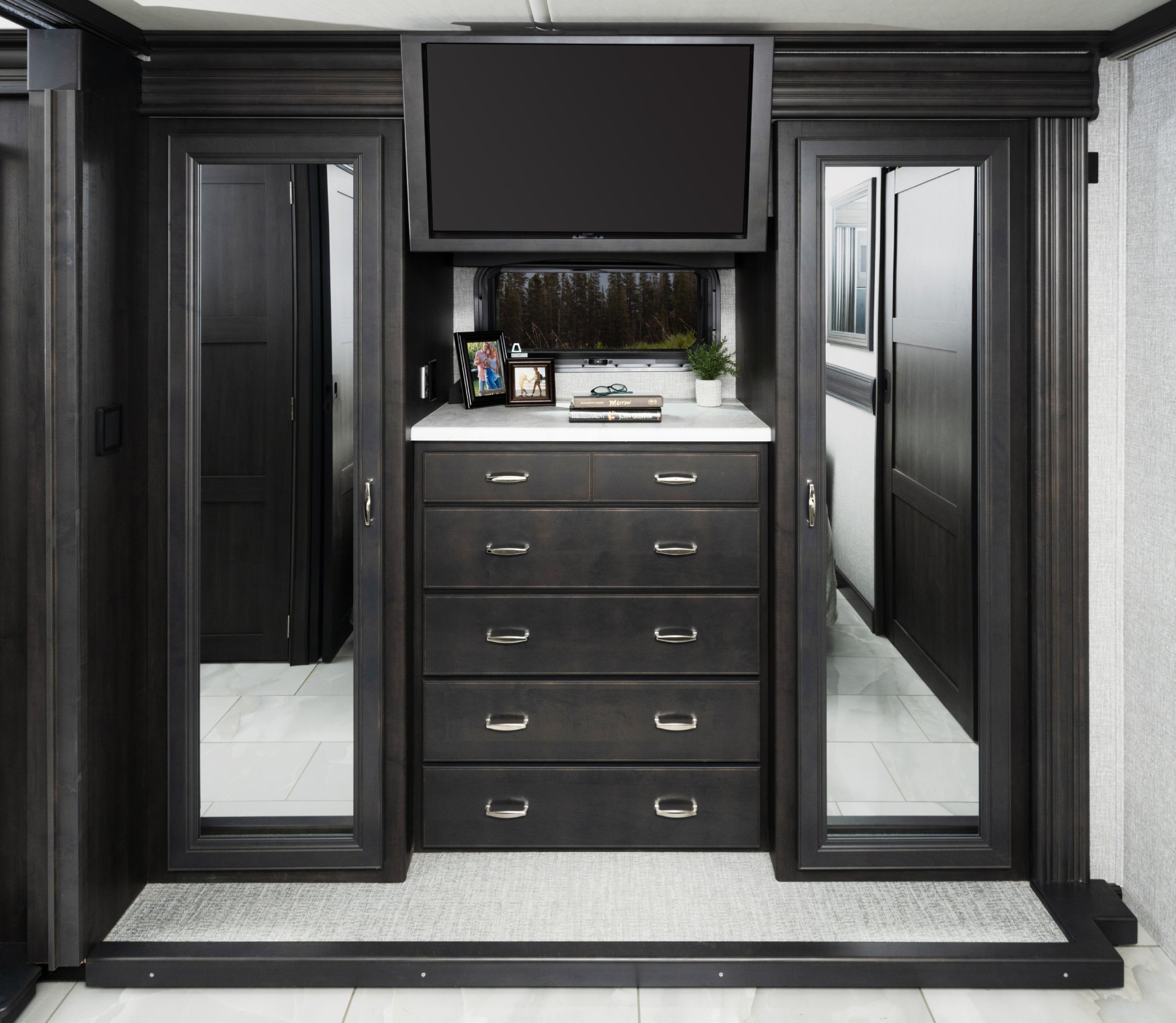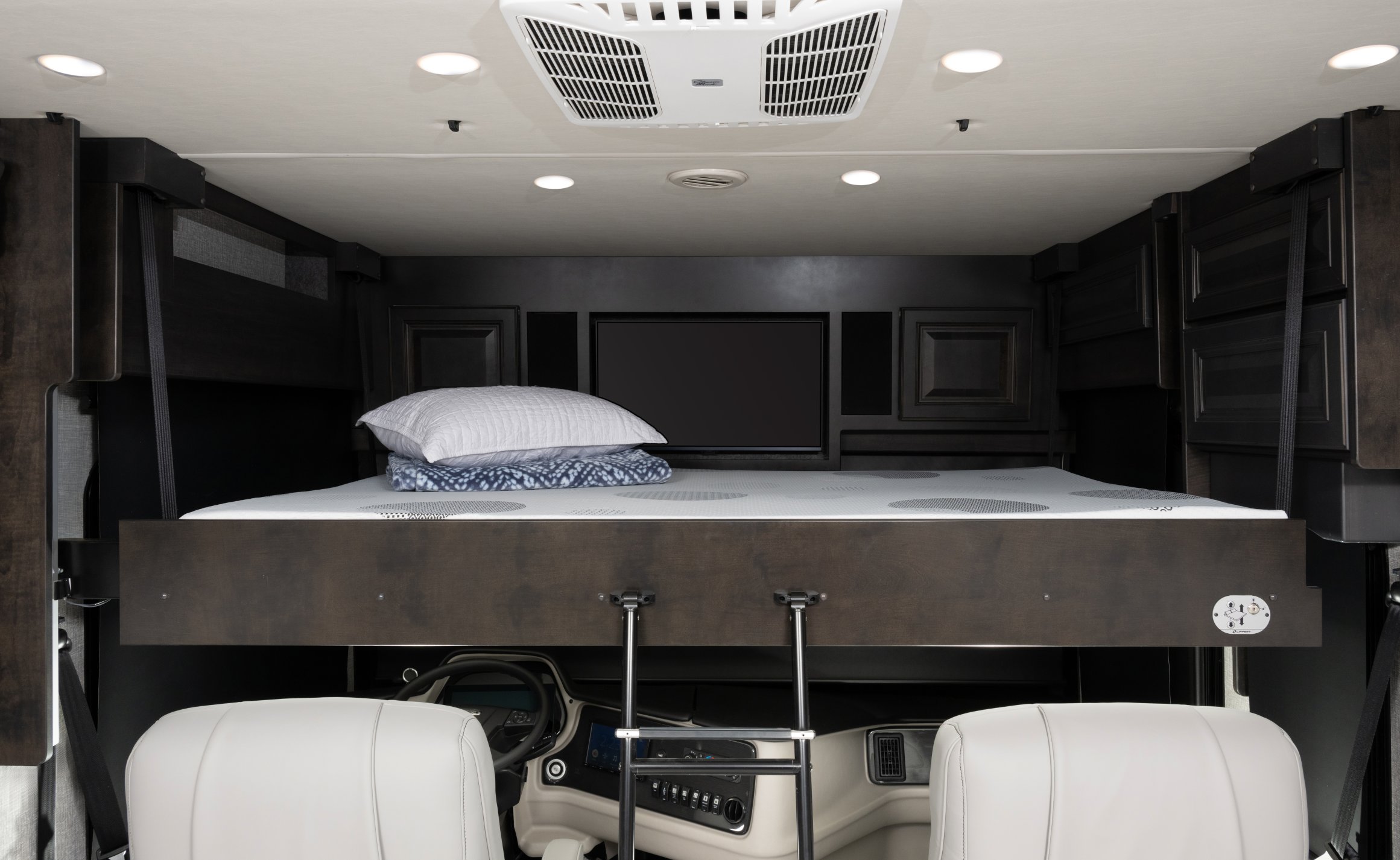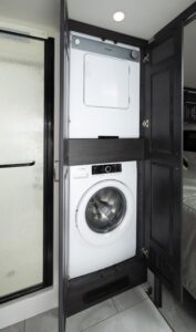 Eat well on the road with a galley featuring residential refrigerator, induction cooktop and convection microwave (standard) – just like home!